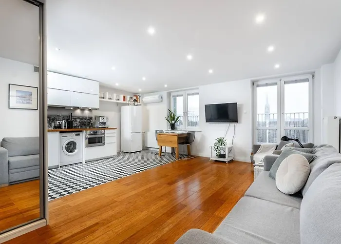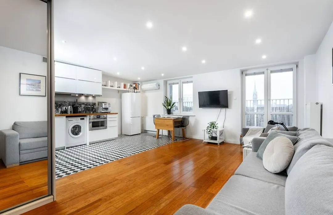 The 35 m² The Checkmate Studio Ac Metro Plocka Warsaw features convenient proximity to such city attractions as Teatr Dramatyczny, situated about 5 minutes' walk away. Guests can use Wi-Fi for either business or leisure reasons.